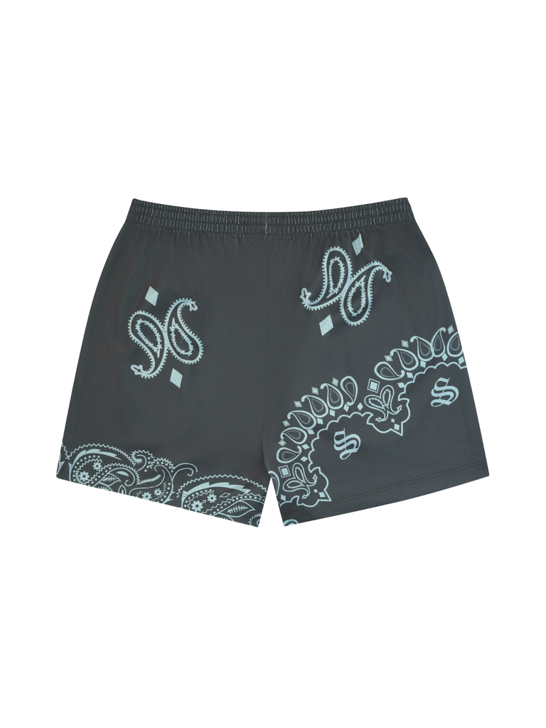 - Charcoal Gray with Tiffany blue bandana design shorts